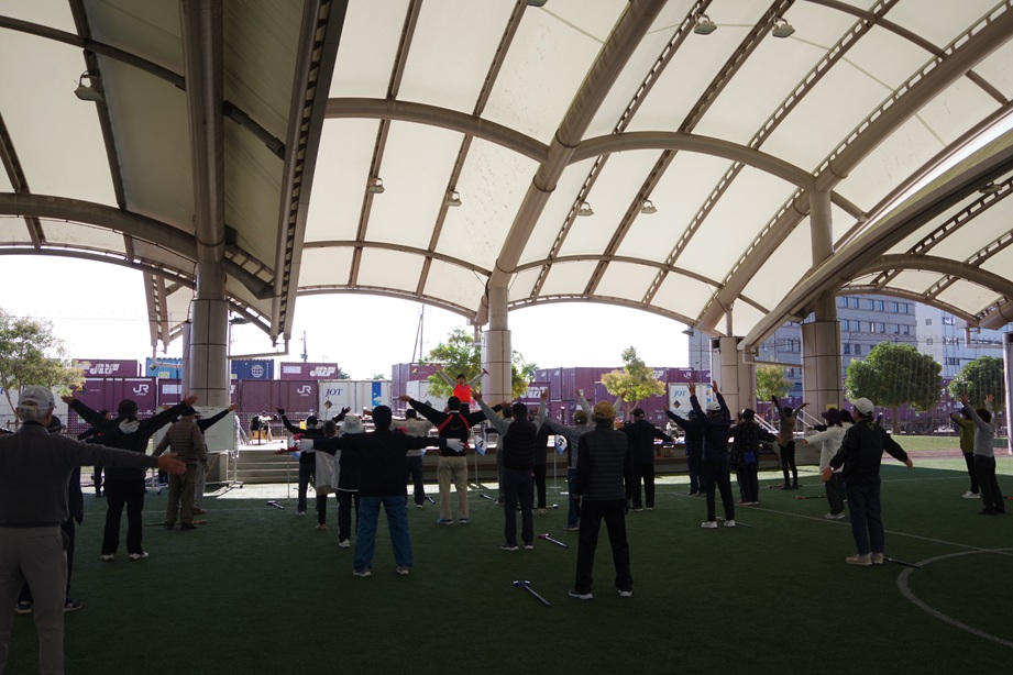 怪我無くグラウンドゴルフを楽しんでいただくために、まずは準備運動から🧘♀️