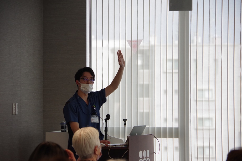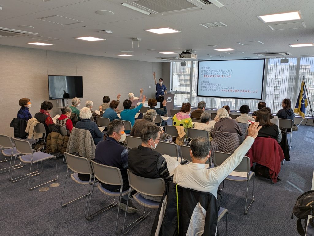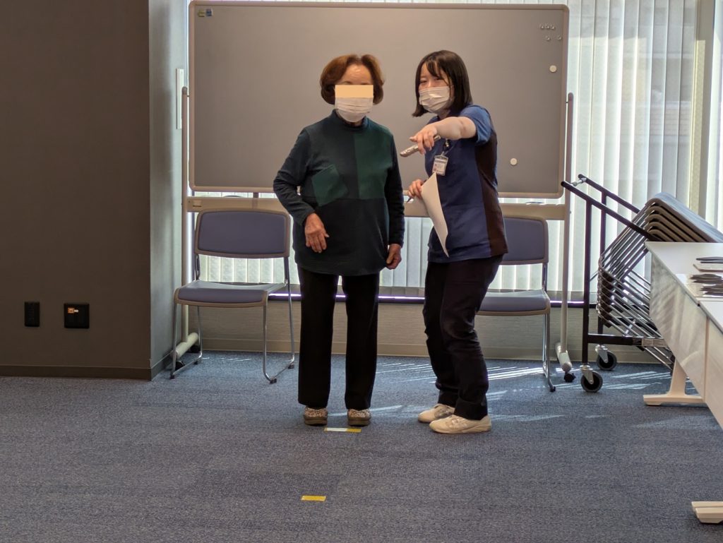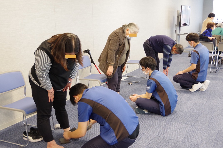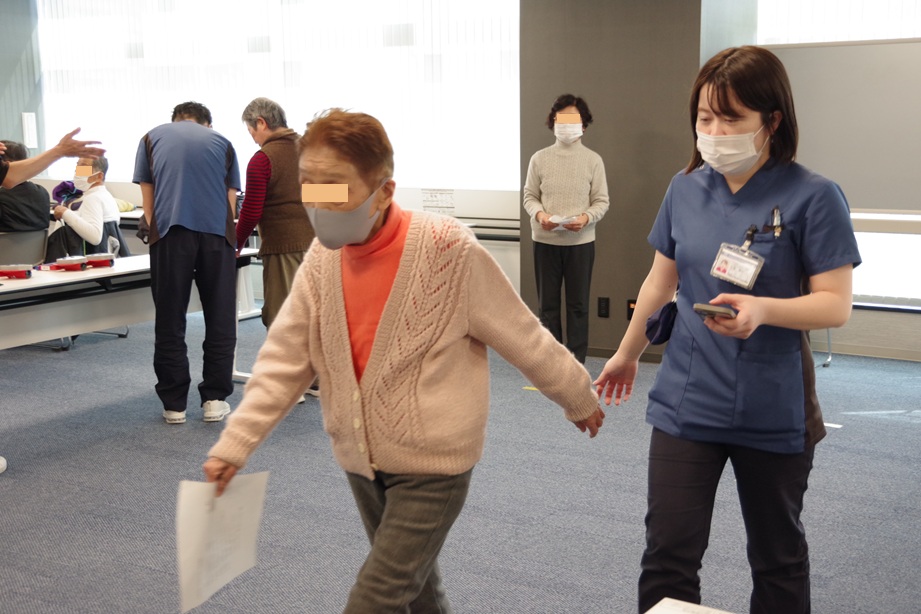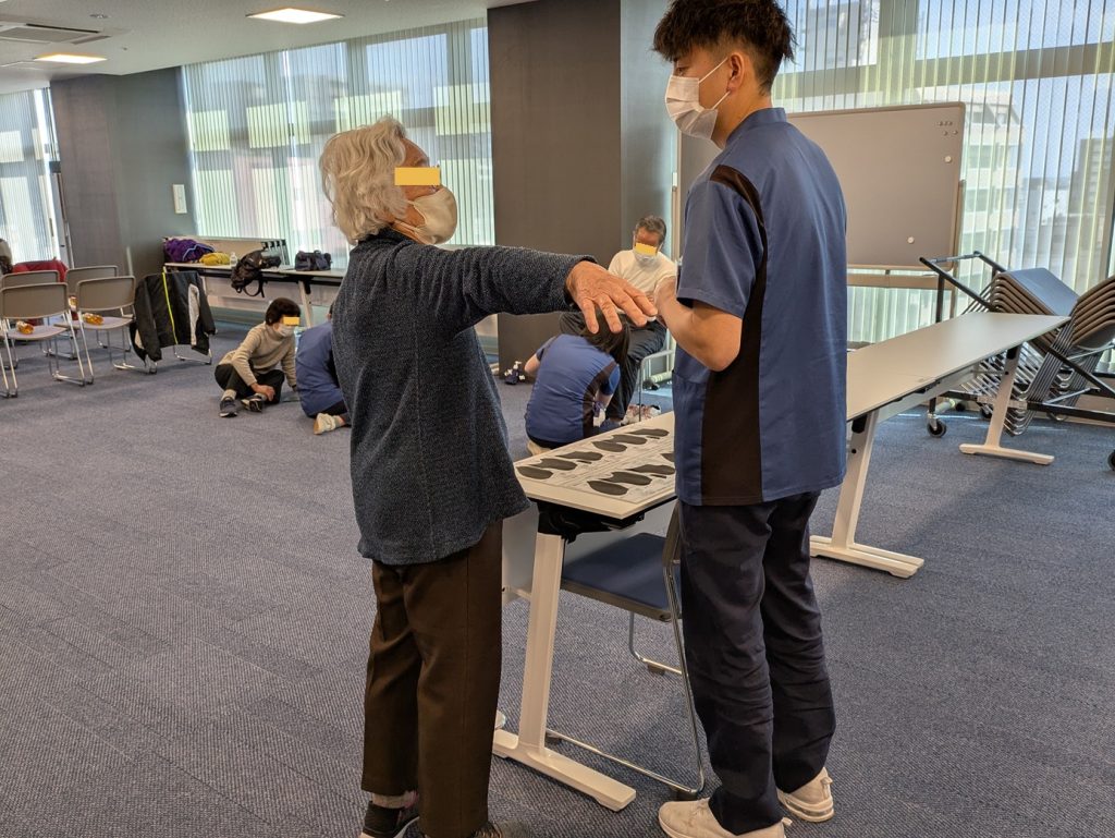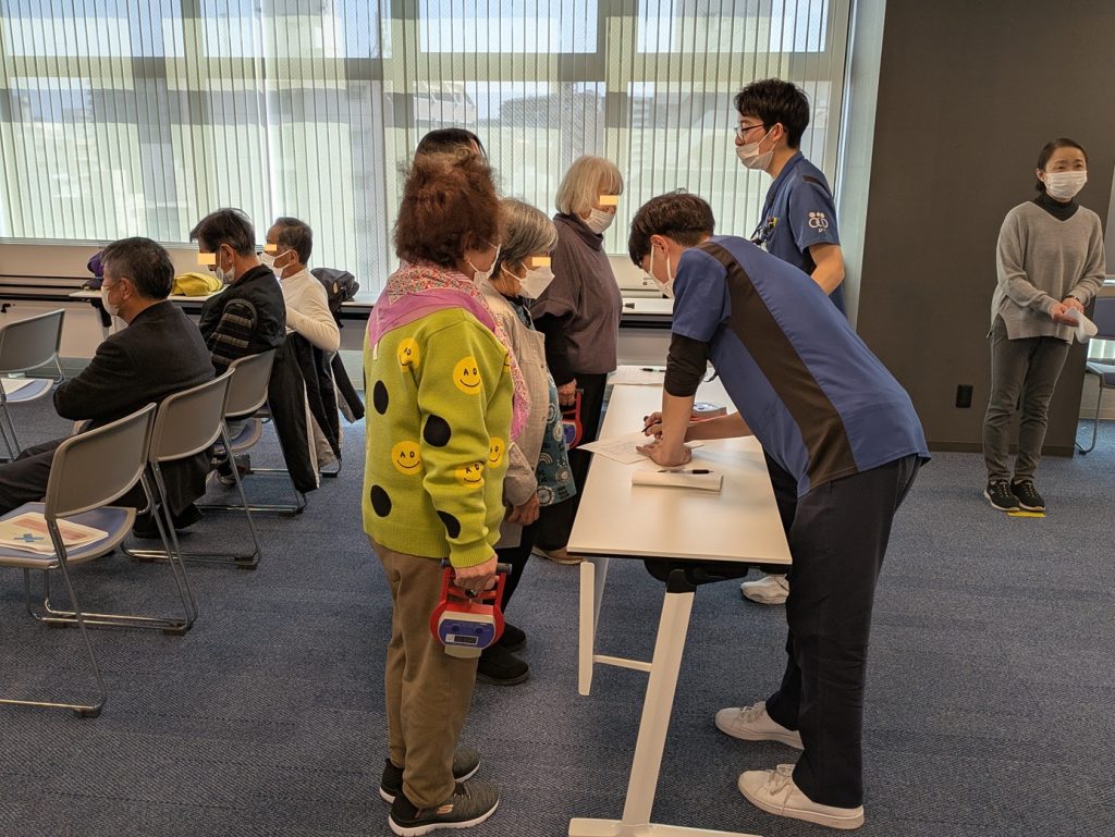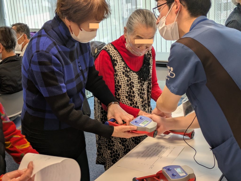 フレイルチェックでは、フレイルについての講義後、握力測定・4m歩行速度の計測に加え、簡易アンケートで自身のフレイルリスクを評価し、対策等の紹介まで行いました🎤