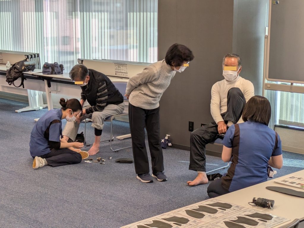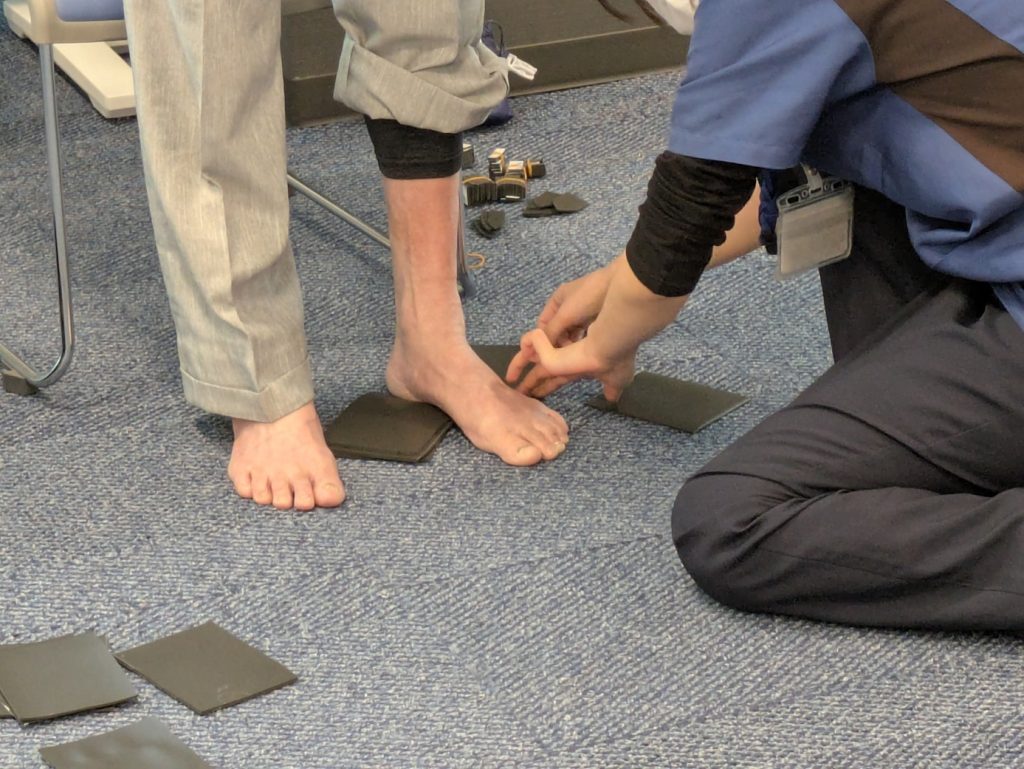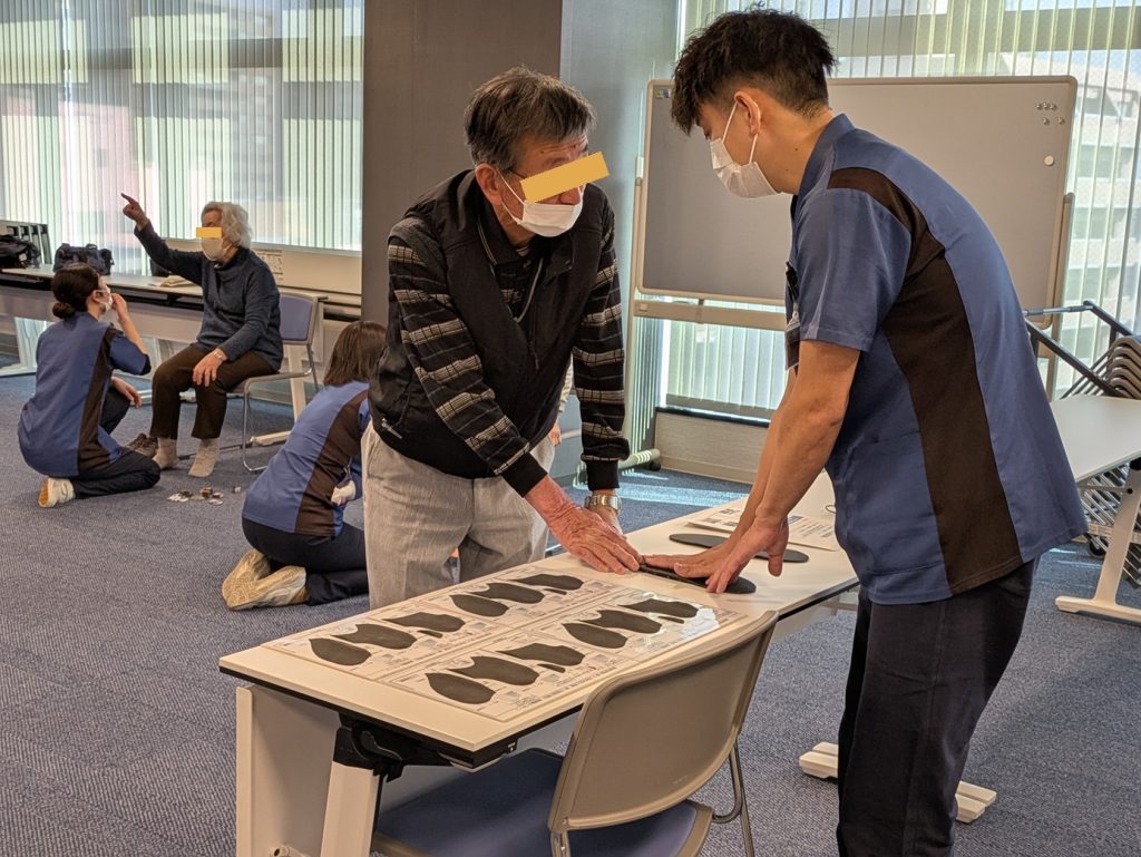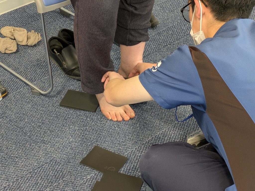 歩行についての講義後、インソールが使用者の歩行や身体操作にどのような影響を与えるのか、当院で作成しているオーダーメイドインソールについて、個別に簡易的なインソールを作成し、体験していただきました👟